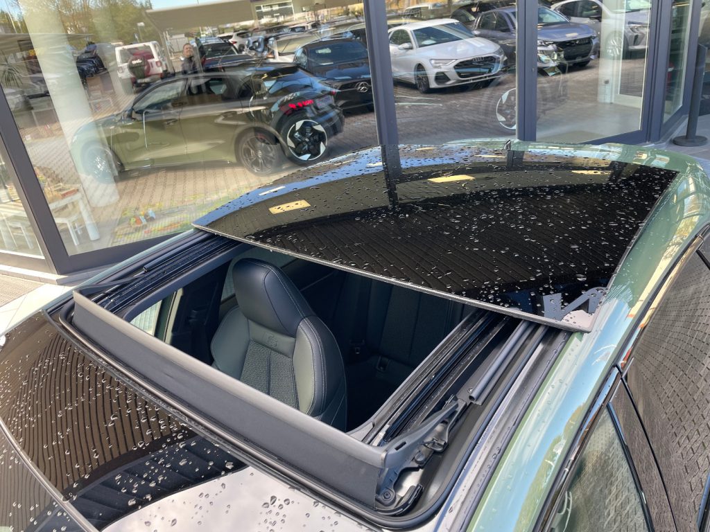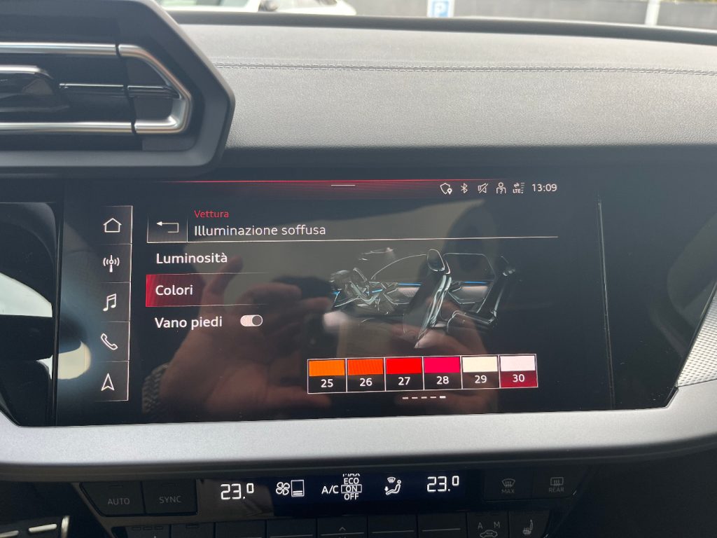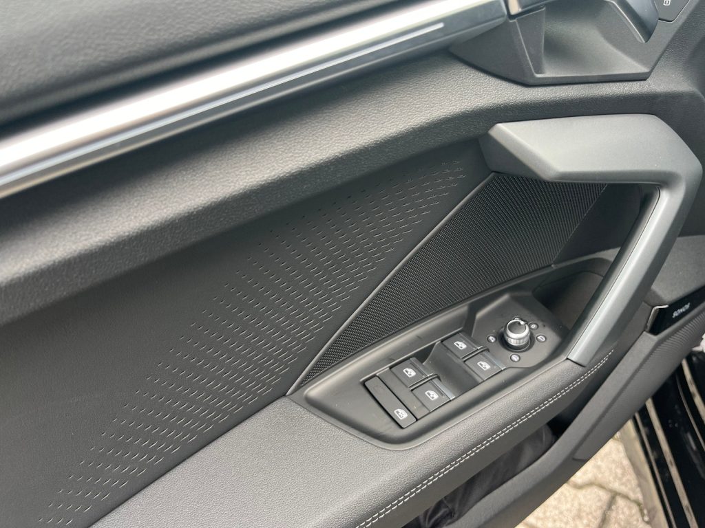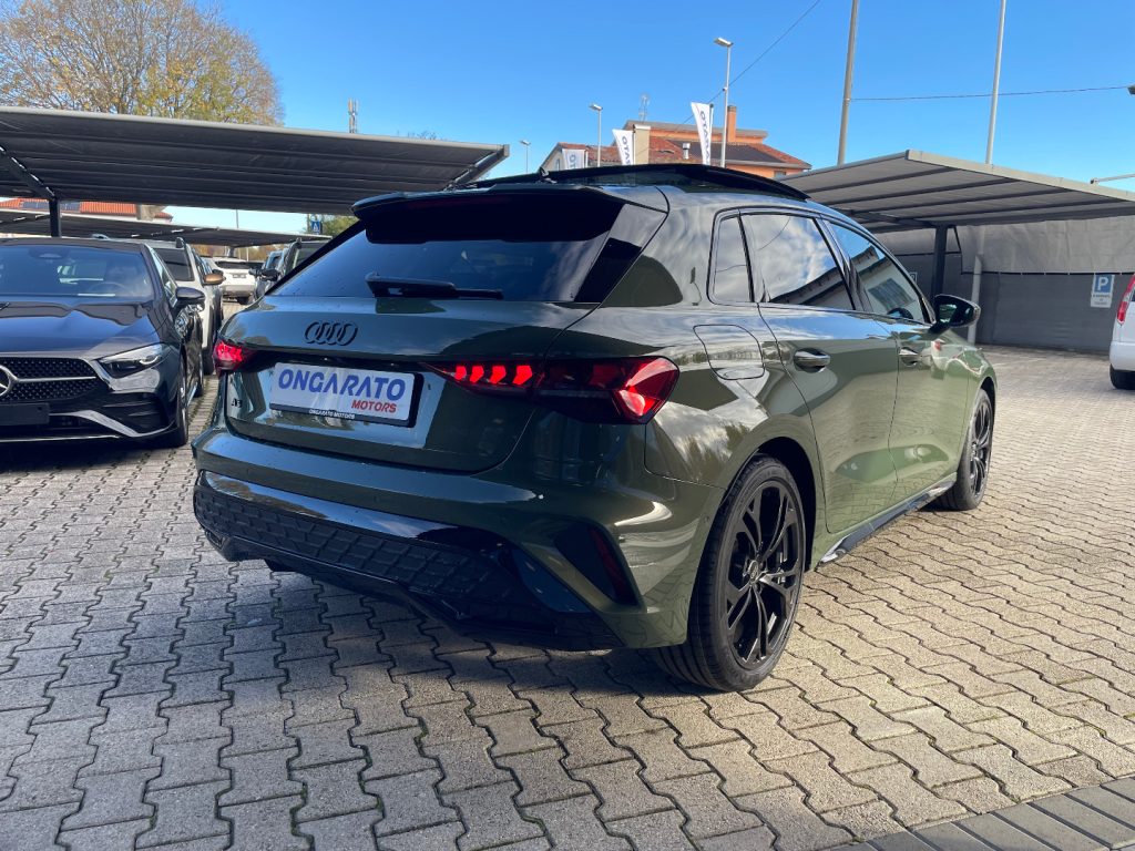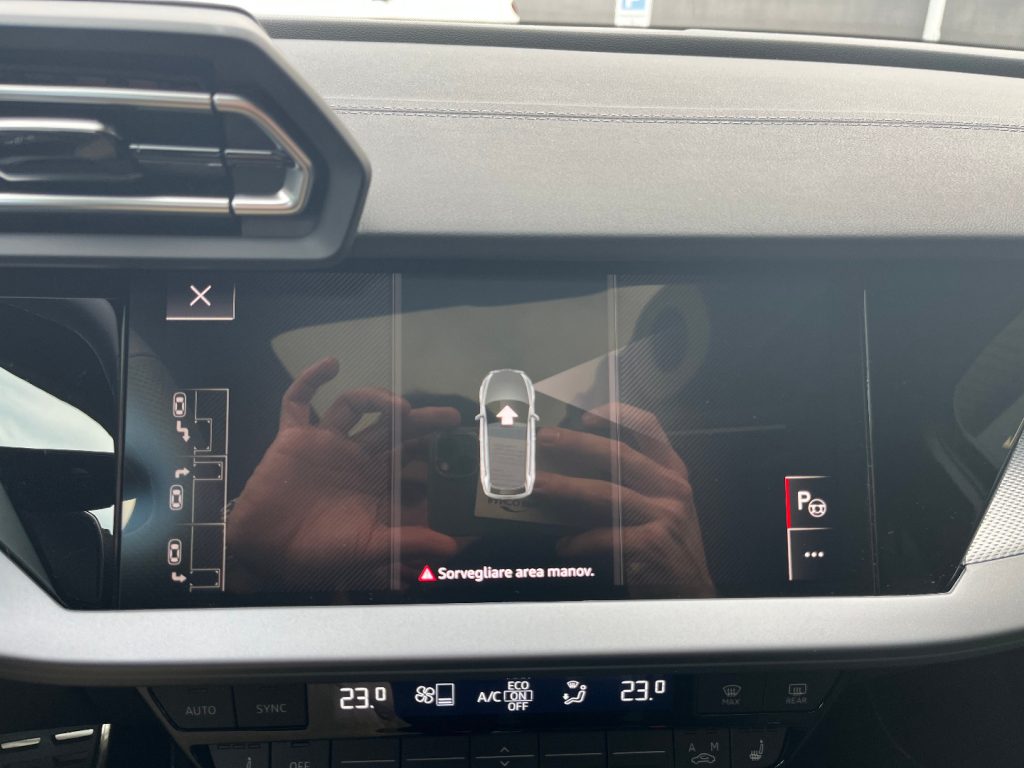 Cambio automatico S tronic a 7 rapporti EI/PWK Tessuto Pulse/Pelle Nero con cuciture grigio roccia 1M5 Predisposizione per gancio traino 3FB Tetto panoramico apribile in vetro 4K5 Chiave comfort senza funzione safelock 4ZP Pacchetto look nero plus 5MJ Inserto alla plancia in alluminio Spectrum scuro, accenti in grigio vulcano 9VS SONOS 3D Premium Sound System KA6 Telecamere perimetrali PXC Proiettori a LED Audi Matrix con gruppi ottici posteriori a LED: 8X8 Lavafari, 3 firme luminose aggiuntive sono selezionabili dal MMI, Gruppi ottici posteriori a LED con indicatori di direzione dinamici, Luci di svolta dinamiche, Regolazione automatica dinamica della profondità fari PZC Pacchetto assistenza e parcheggio pro con pacchetto safety plus: 6I6 Adaptive cruise assist con emergency assist, 79H Audi pre sense rear (sistema assistenza al traffico trasversale posteriore), 8A2 Sistema di ausilio al parcheggio plus con assistente al parcheggio e visualizzazione perimetrale, Assisted lane change, Assistente agli ostacoli con assistente alla svolta (turn assist), Audi pre sense basic, Sensori di parcheggio anteriori e posteriori, Side assist con exit warning e rear cross-traffic assist QL5 Vetri laterali posteriori e lunotto oscurati QQ3 Pacchetto luci d‘ambiente pro U35 Cerchi Audi Sport, design a 5 razze doppie a Y, nero metallizzato da 18" UH2 Freno di stazionamento elettromeccanico con assistenza alla partenza Vernice